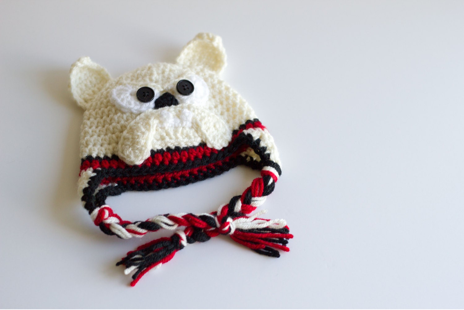 Super cute bulldog hat! Made with a little red and black for the UGA Dawgs.